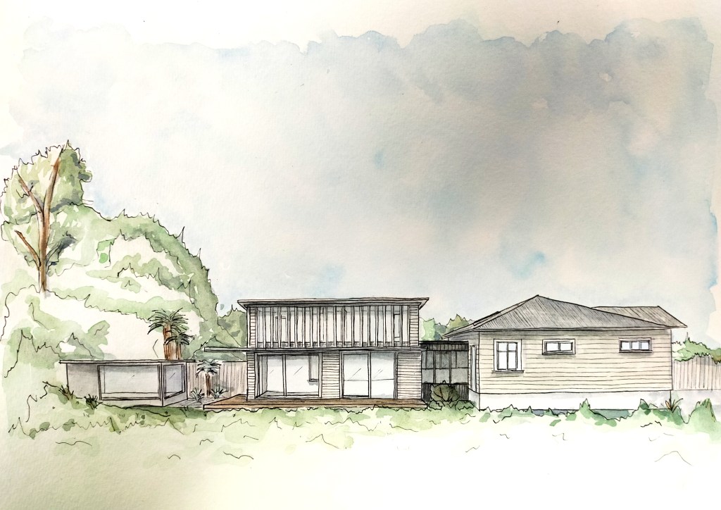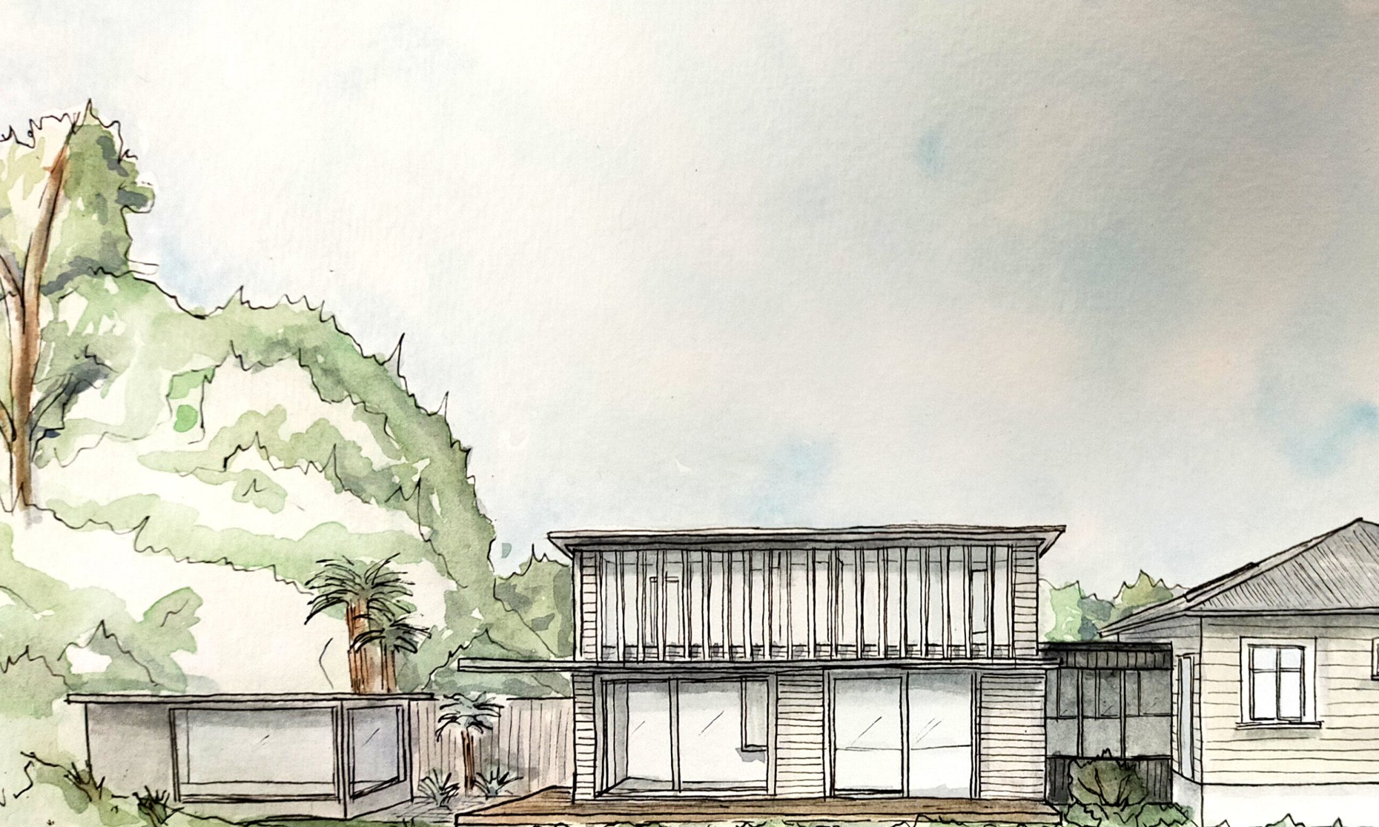 This family home is located in Island Bay, nestled among Wellingtons trees and bush. The existing house is a small one storey bungalow, which the clients have outgrown but still love the neighbourhood. There is an existing lean-to that will be removed for the new extension.