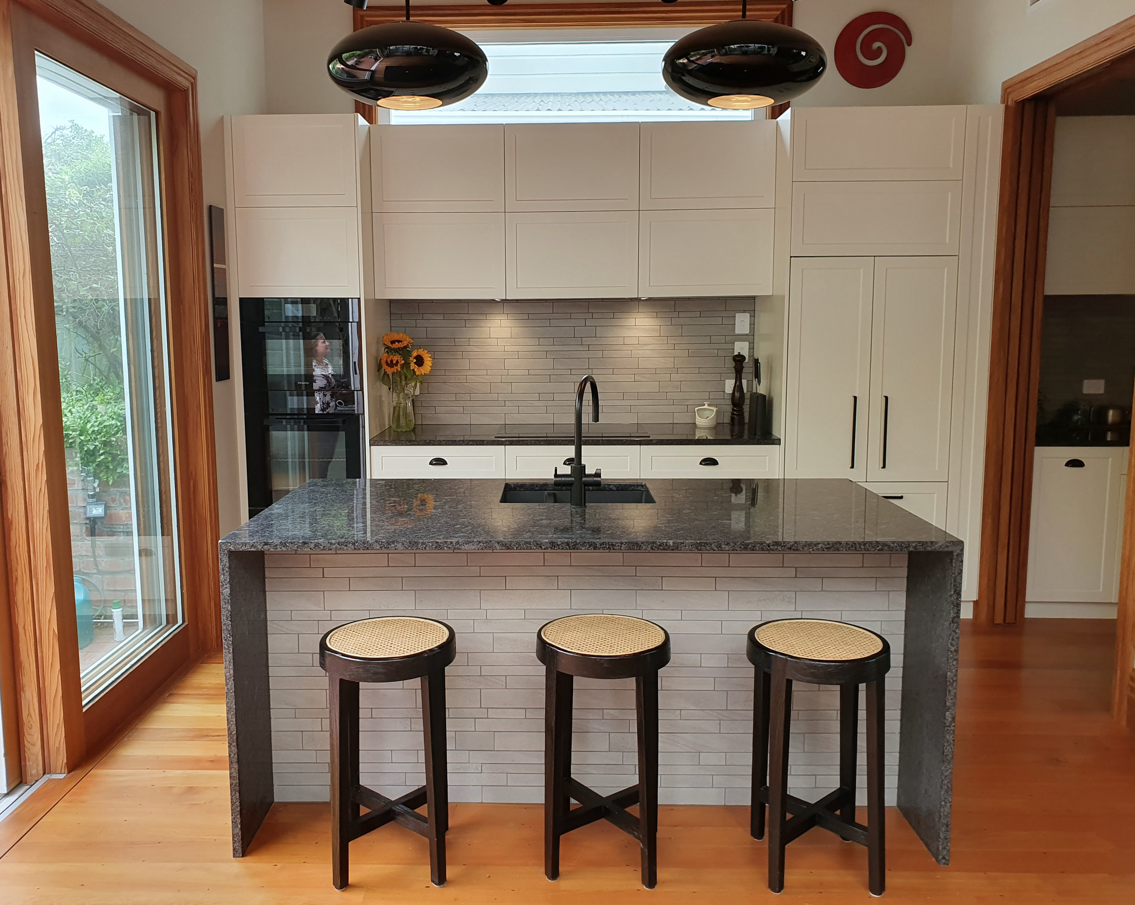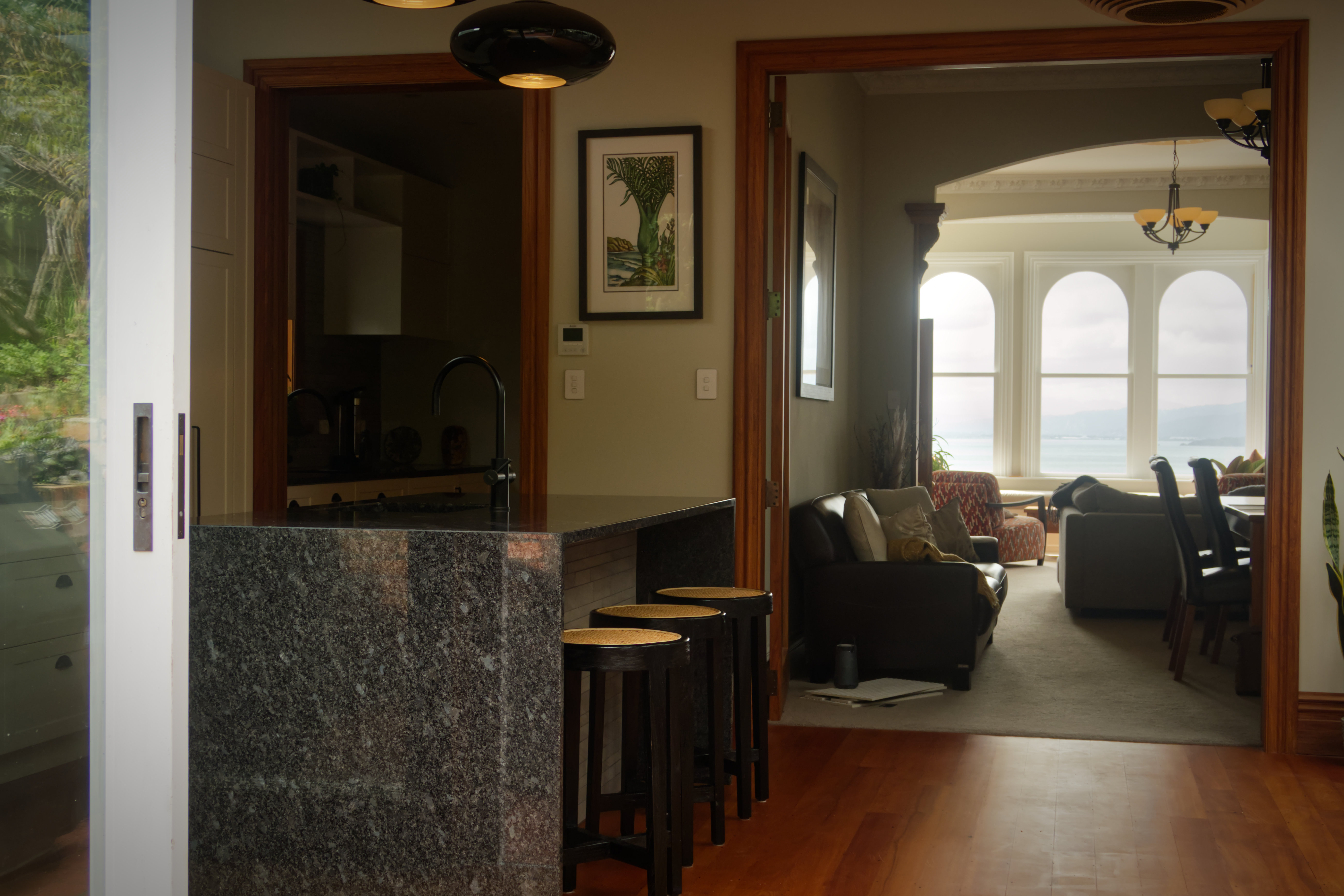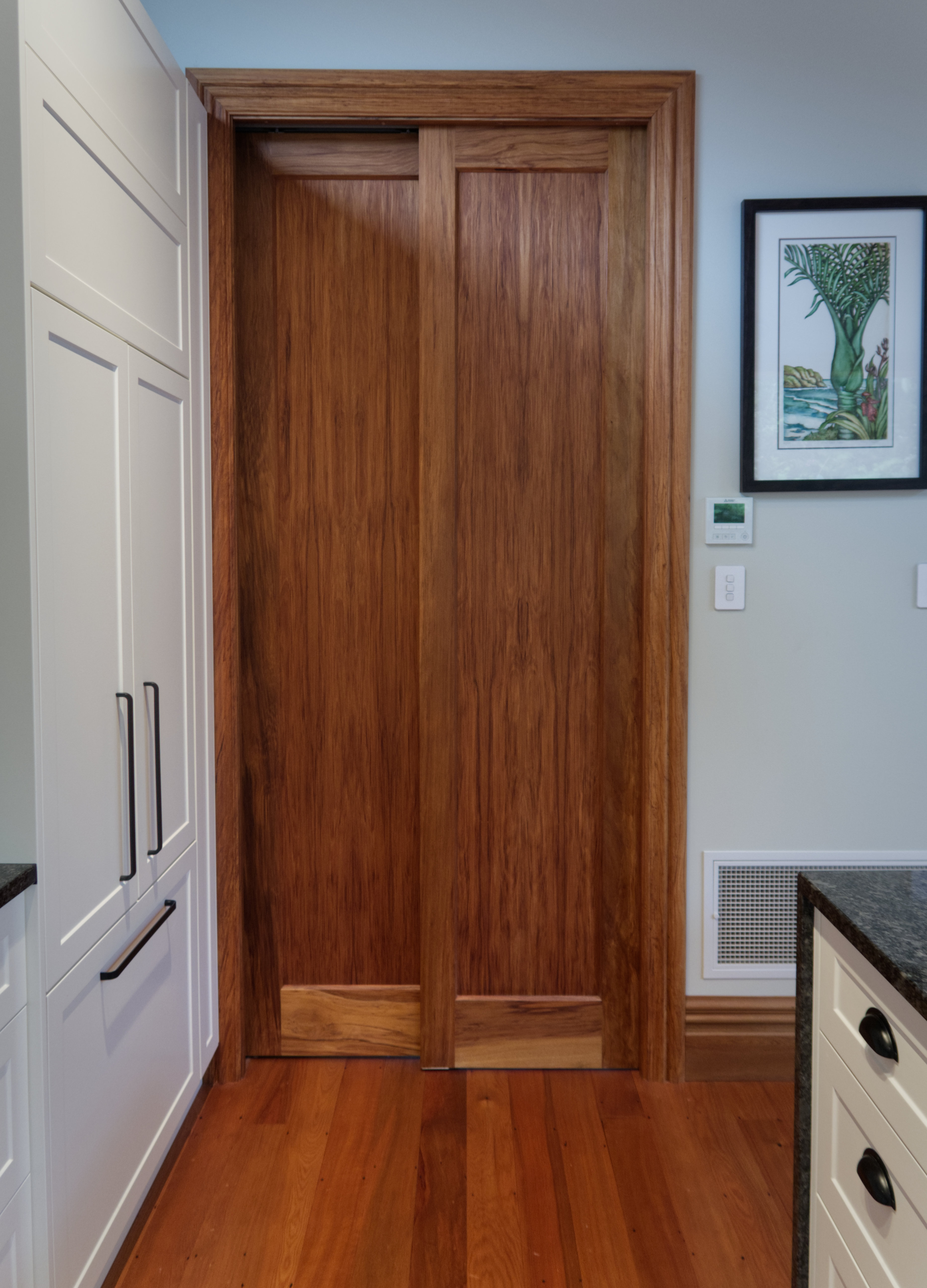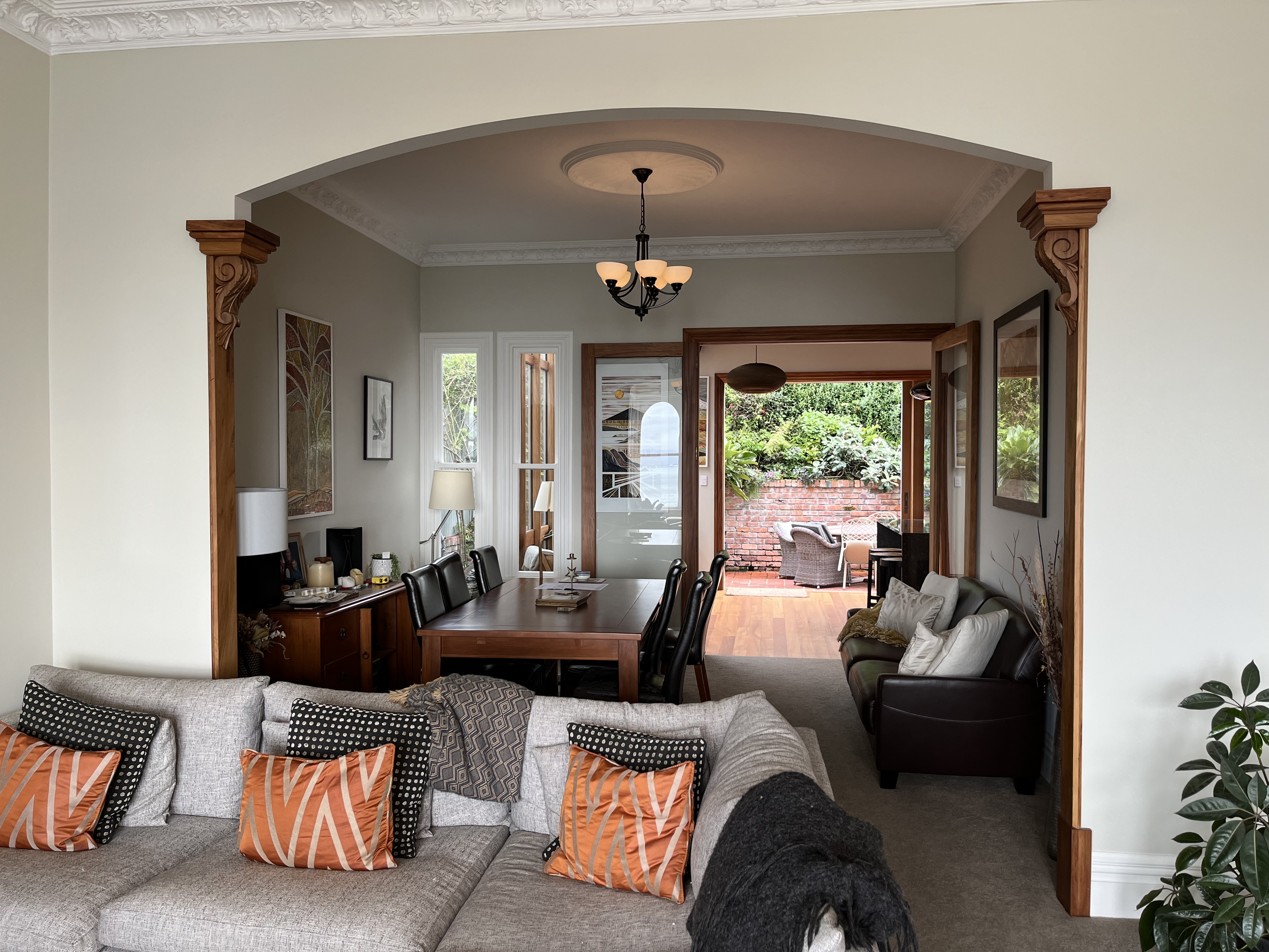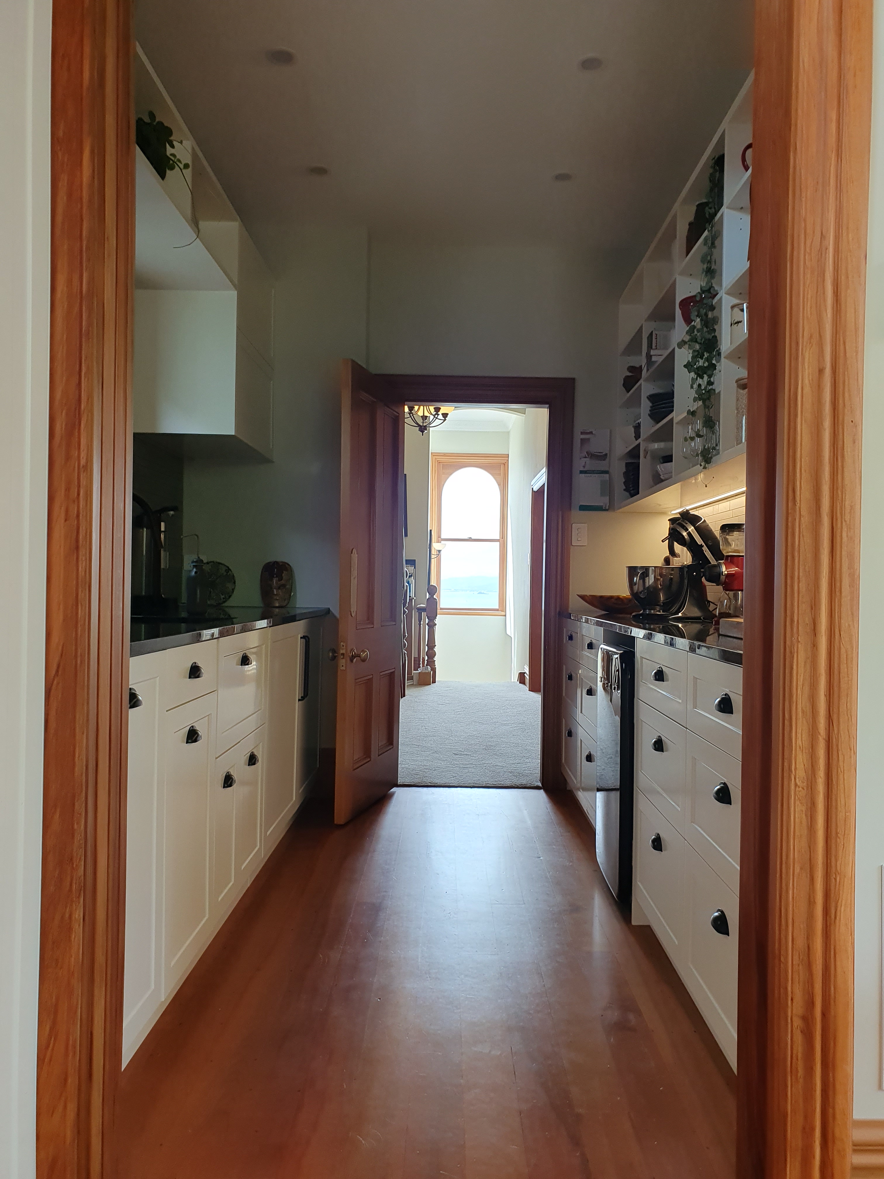 Our clients in the Mt. Victoria Villa had a large, beautiful home with a small, cold kitchen where the flow didn’t really work with the house. They wanted a new kitchen, a pantry/laundry room, to move a few walls, and add some big new stacking doors out to the garden.
