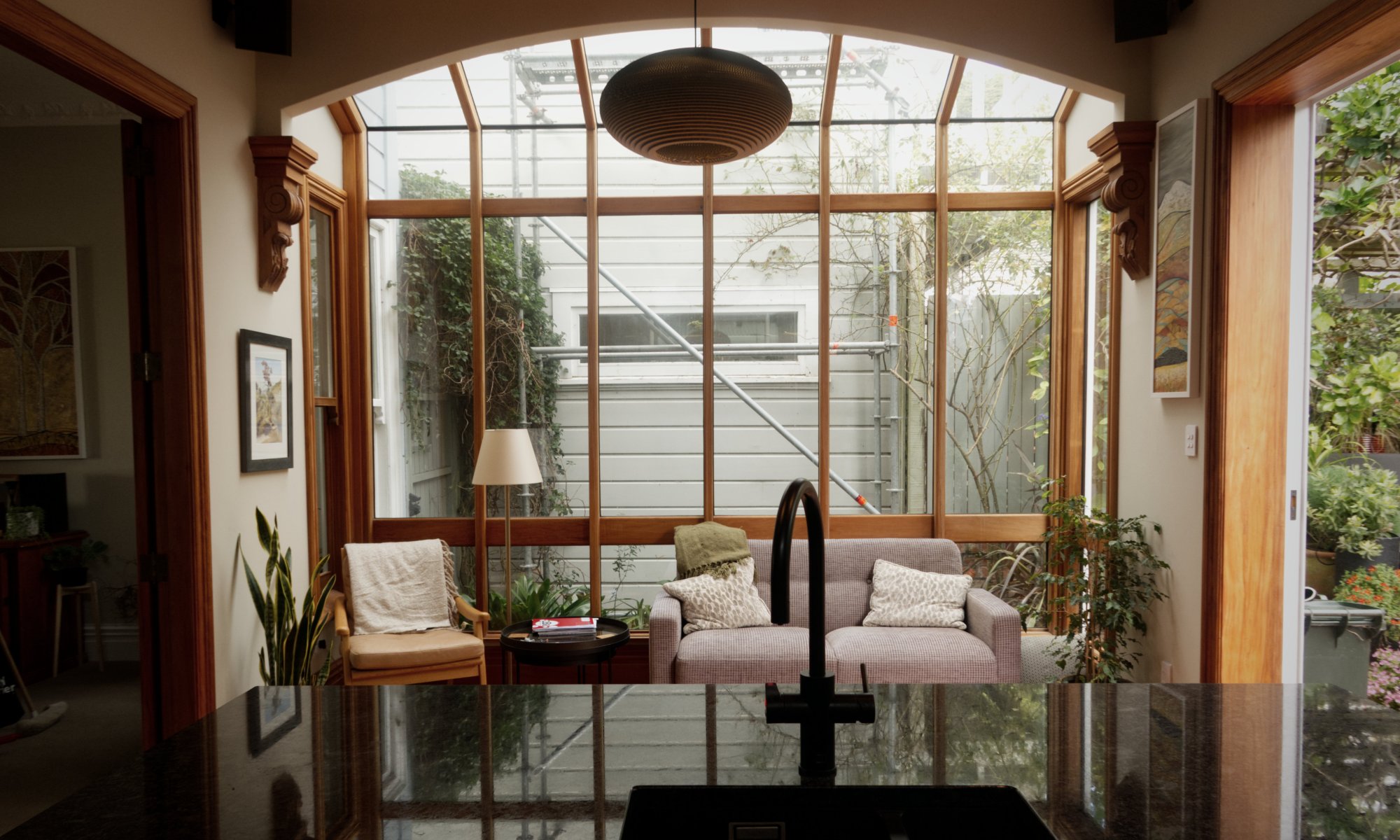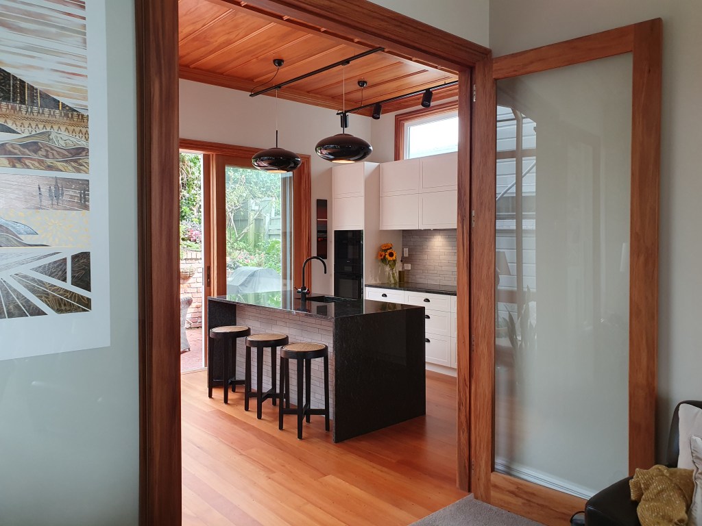 The renovation fitted within the exterior walls of the building, but by opening up the spaces they feel larger and have increased functionality. The new sliding doors to the back patio open the kitchen to the exterior and flood the room with even more daylight than before. Retrofitted double glazing and new timber flooring help to keep the new rooms warm and comfortable year-round.
