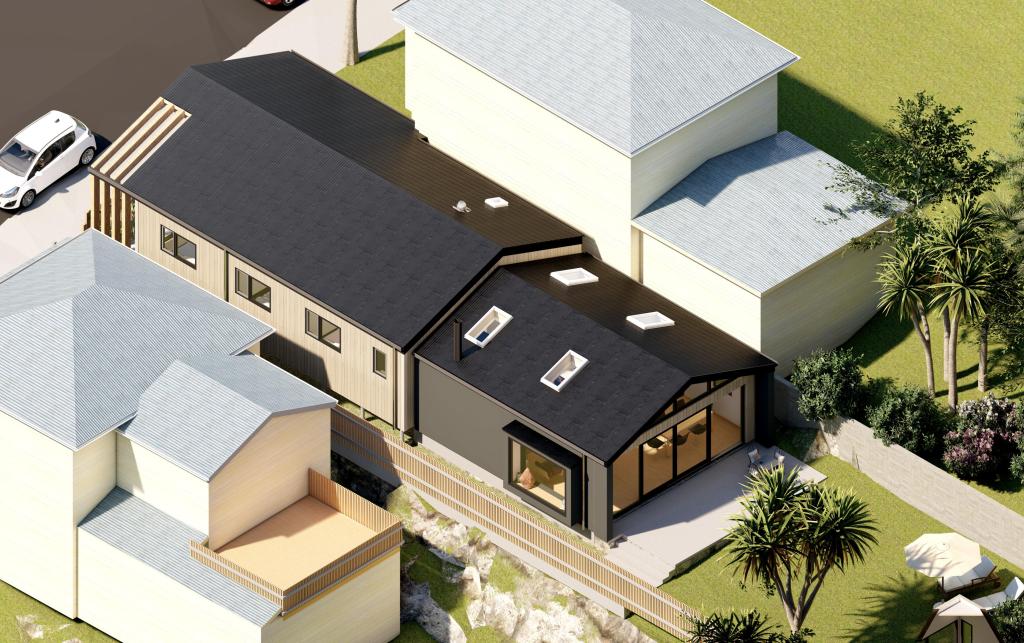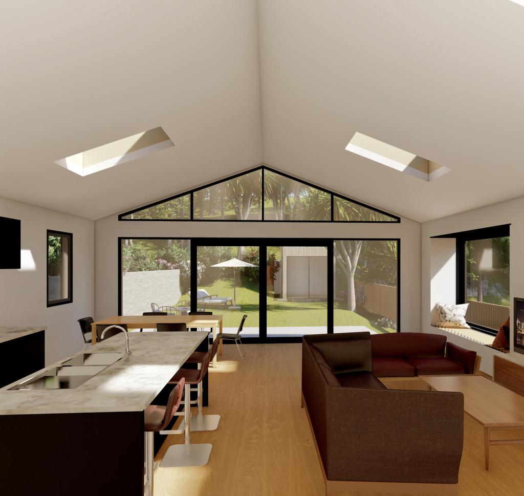 The front half of the new dwelling will be clad in Accoya weatherboards, while the living half at the back will be clad in modern profiled metal cladding, creating a bold and fun contrast between the two halves.